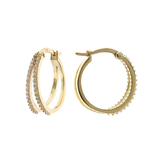 Orecchini a Cerchio Doppi con Cubic Zirconia Oro 375 Sku: WSGD90456