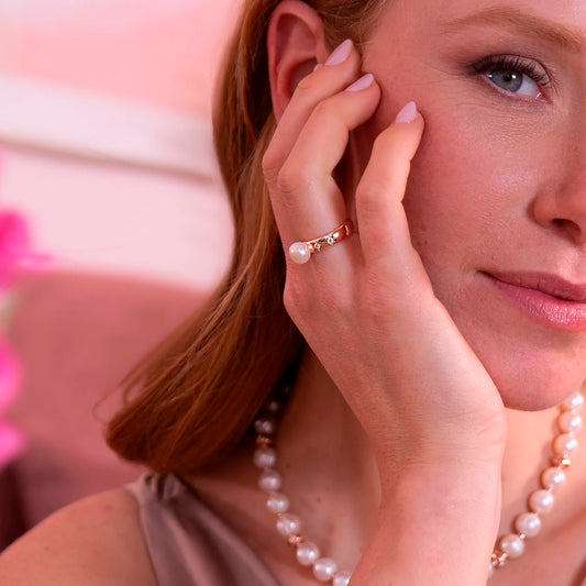 Anello Solitario Étoile con Perla a Bottone d'Acqua Dolce Bianca Ø 8 mm Sku: WSBZ02227