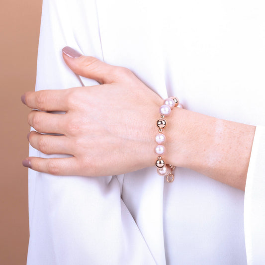 Bracciale con Sfere Lucide e Perle Ming d'Acqua Dolce Rosa Sku: WSBZ01583