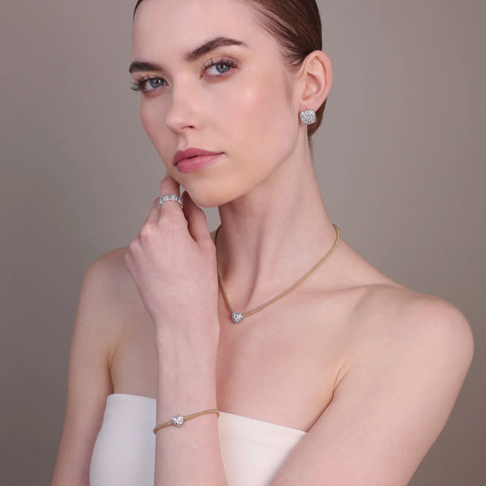 Collana Golden Maglia Popcorn con Cuore in Pavé di Cubic Zirconia Sku: WSBZ02495Y