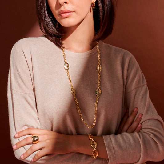 Collana Lunga Catena Rolo con Maglie Marine Martellate Sku: WSET00686