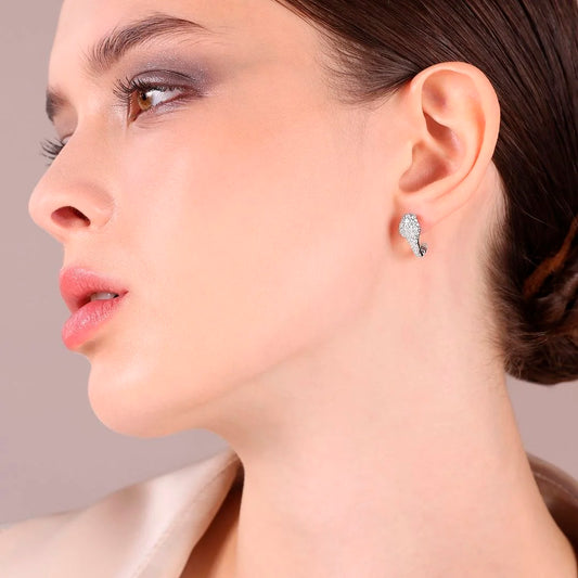 Orecchini a Lobo in Argento 925 placcato Rodio con Pavé di Cubic Zirconia Sku: MTV721