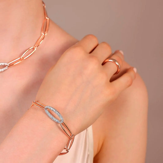 Armband mit ovalen Gliedern und Pavé-Elementen aus Zirkonia Sku: WSBZ02014