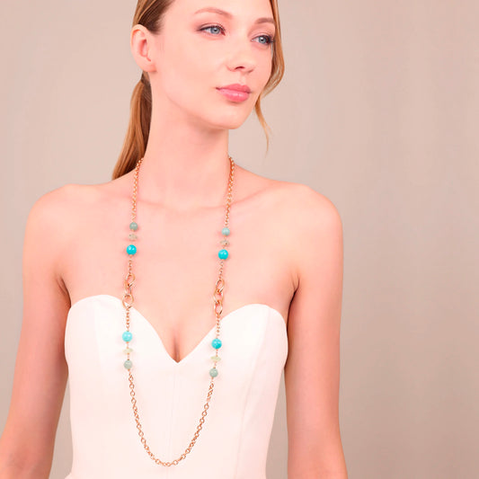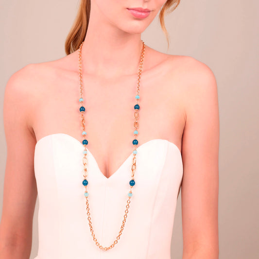Collana Lunga con Maglie Ovali e Pietre Naturali di Quarzite Blu Sku: M17093NBR