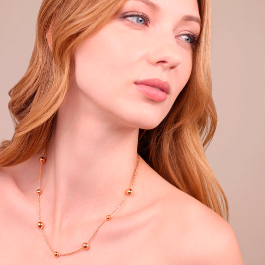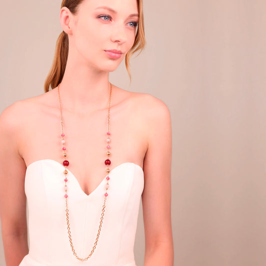 Collana Lunga con Bead Lucide e Pietre Naturali di Quarzite Rossa Sku: M17095NBR