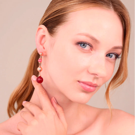 Orecchini Pendenti con Pietre Naturali di Quarzite Rossa Sku: M17096EBR