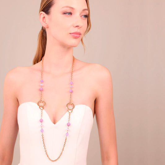 Collana Lunga Anelli Martellati e Pietre Naturali di Quarzite Viola Sku: M17118NBR