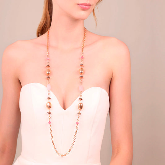 Collana Lunga Pepite Lucide e Pietre Naturali di Quarzite Rosa Sku: M17122NBR