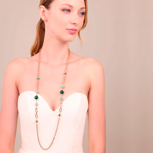 Collana Lunga Staffa con Pietre Naturali di Quarzite Verde Sku: M17130NBR