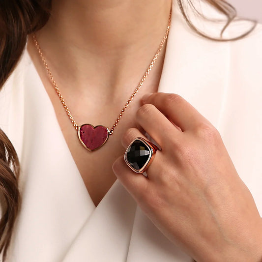 Anello Cocktail con Pietra Naturale e Castoni a Cuore Sku: WSBZ01830