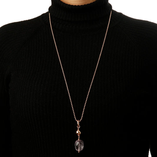 Collana Lunga Catena Rolo e Pendente con Sfera Lucida e Quarzo Rosa Sku: WSBZ02140