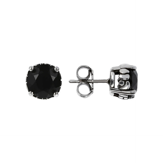 Orecchini a Bottone con Spinello Nero in Argento 925 Sku: WSOX00119