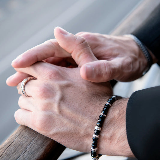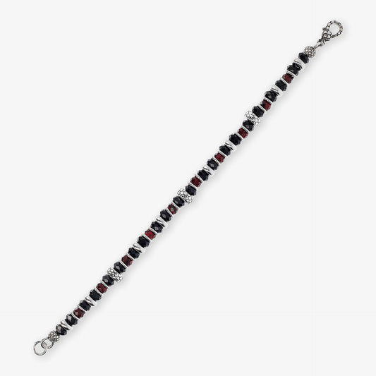 Bracciale con Rondelle Texture Sirena e Pietre Naturali Spinello e Granato in Argento 925 Sku: WSOX00161