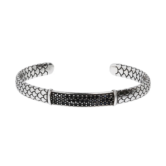 Bracciale Rigido Texture Sirena con Pavé in Spinello Nero in Argento 925 Sku: WSOX00165