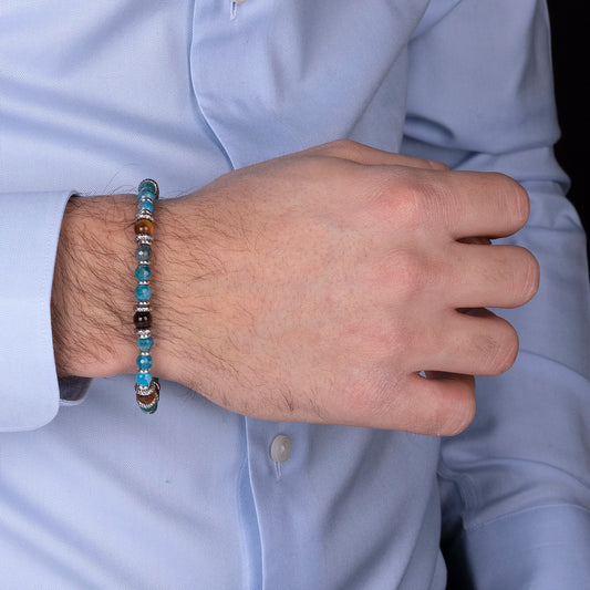 Bracciale con Rondelle e Pietre Naturali Apatite e Occhio di Tigre in Argento 925 Sku: WSOX00213