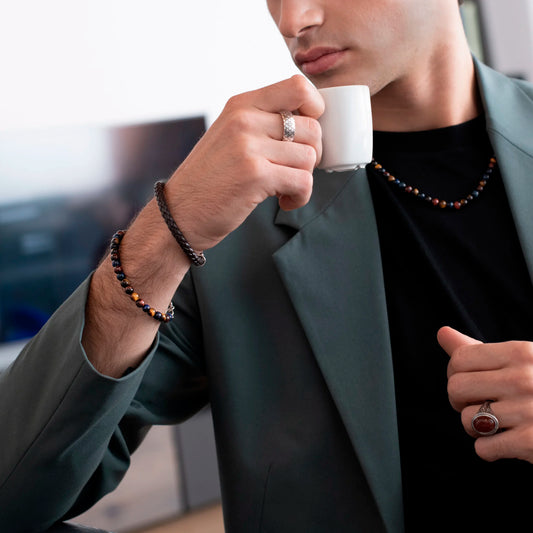 Availability: 67Regular price $187.00 USDRegular priceSale price $187.00 USDRetail: $0.00 USDUnit price / perBracciale con Pietre Naturali e Rondelle Texture Sirena in Argento 925