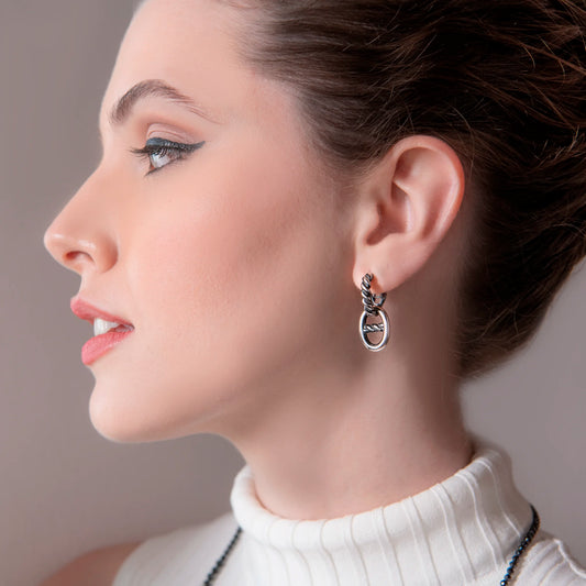 Orecchini Pendenti Texture Corda con Maglie Marine in Argento 925 Sku: WSOX00485