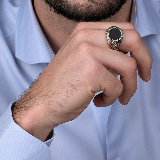Tribal Texture Siren Chevalier Ring with Black Onyx Sku: WSOX00173