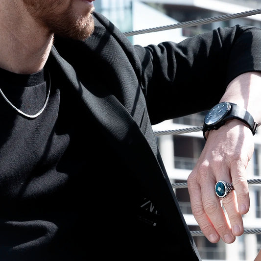 Chevalier Ring Texture Mermaid with Square Natural Stone Sku: WSOX00075