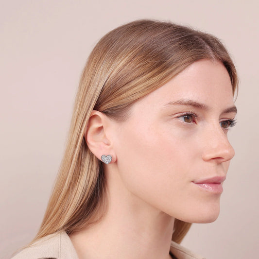 Orecchini Cuore a Lobo in Argento 925 placcato Platino con Pavé di Cubic Zirconia Sku: MTV4009