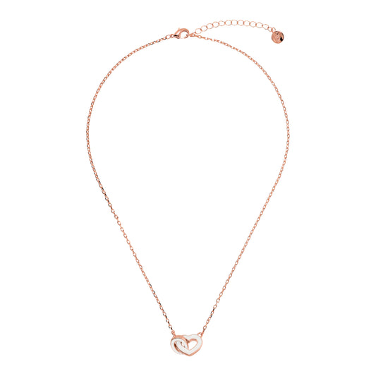 Collana Catena Forzatina con Doppio Pendente Pavé Cuore e Maglia Ovale Sku: WSBZ02280