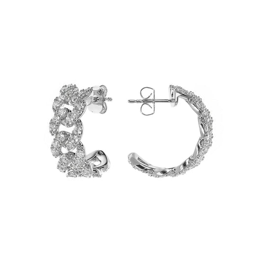 Orecchini a Lobo White Catena Grumetta Squadrata con Pavé di Cubic Zirconia Sku: WSBZ02379W