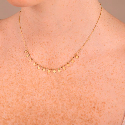 Gold 375 Ball Chain Necklace with Round Pendants Sku: WSGD90214