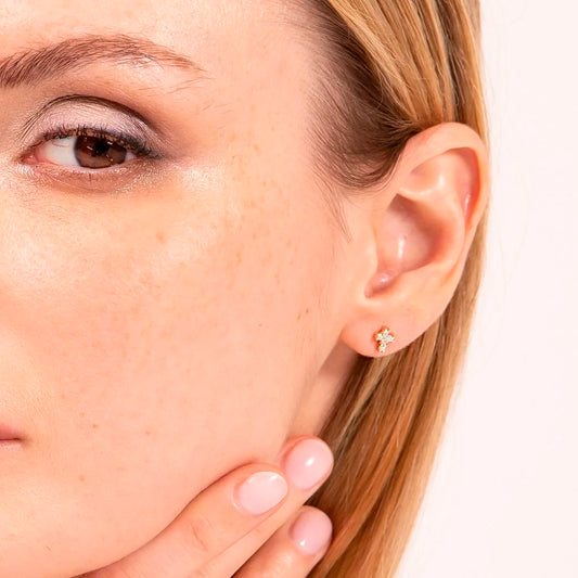 Stud Earrings Cross with Cubic Zirconia Gold 375 Sku: WSGD90453