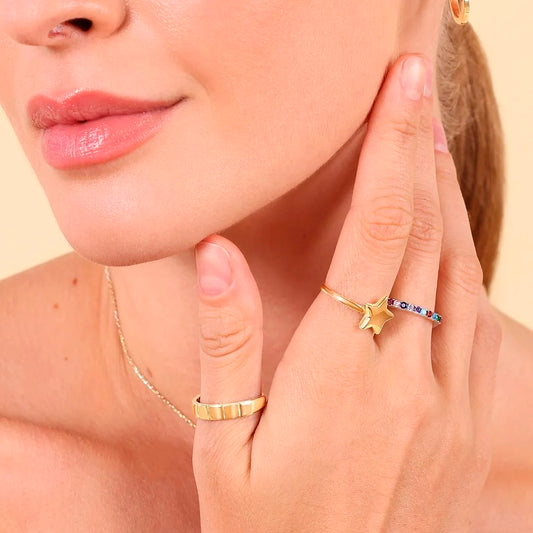375 Gold Veretta Ring with Multicolored Cubic Zirconia Sku: WSGD90644