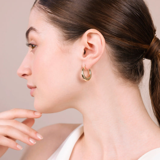 Large 375 Gold Surface Hoop Earrings Sku: WSGD90633
