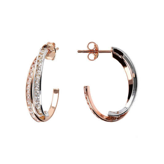 Orecchini Pendenti Doppio Cerchio Bicolore con Cubic Zirconia Oro 375 Sku: WSGD90078