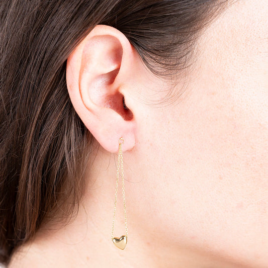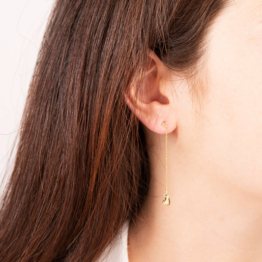 Orecchini Pendenti a Filo con Cuore Asimmetrico Oro 375 Sku: WSGD90203