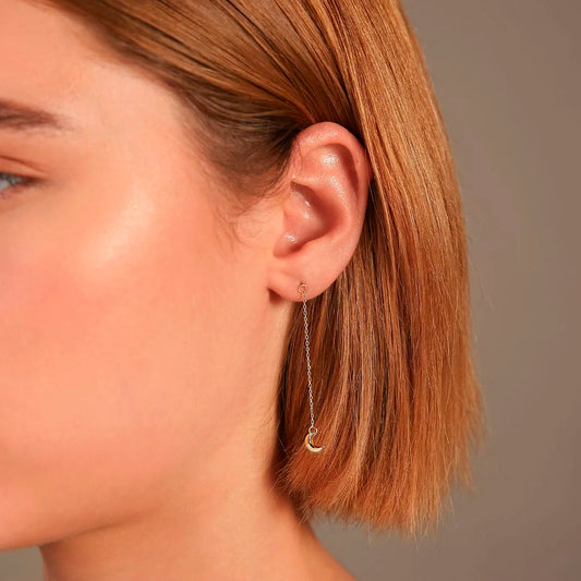 Orecchini Pendenti a Filo con Luna Oro 375 Sku: WSGD90204