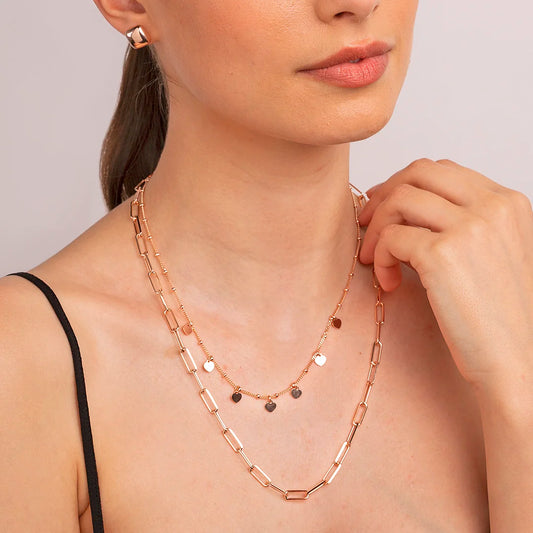 Multifilament Chain Necklace with Forzatina Chain and Rosary with Heart Charms Sku: WSBZ01782