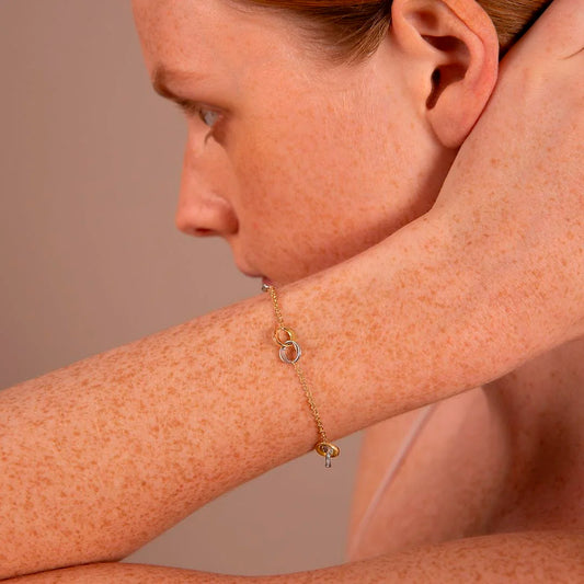 Chain Bracelet with Twisted Double Rings in Two-Color 375 Gold Sku: WSGD90009