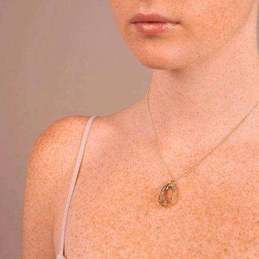 Collana Catena Forzatina con Doppio Pendente Ovale Bicolore Oro 375 Sku: WSGD90079