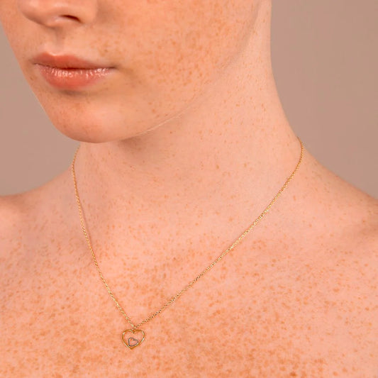 Collana Catena Forzatina con Pendente Doppio Cuore Bicolore Oro 375 Sku: WSGD90347