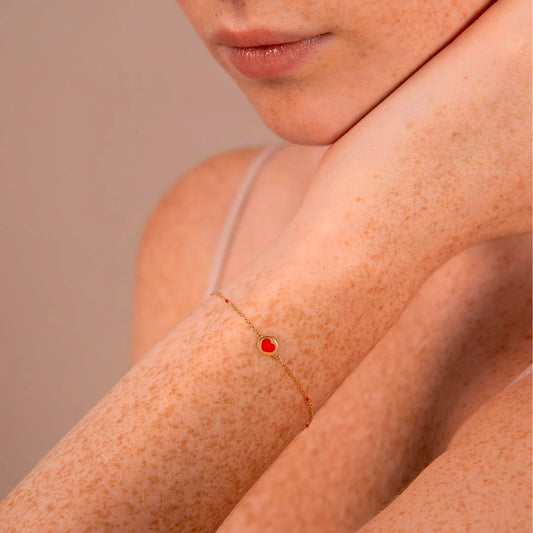 Bracciale Catena Forzatina con Pepite Rosse e Cuore Smaltati Oro 375 Sku: WSGD90399