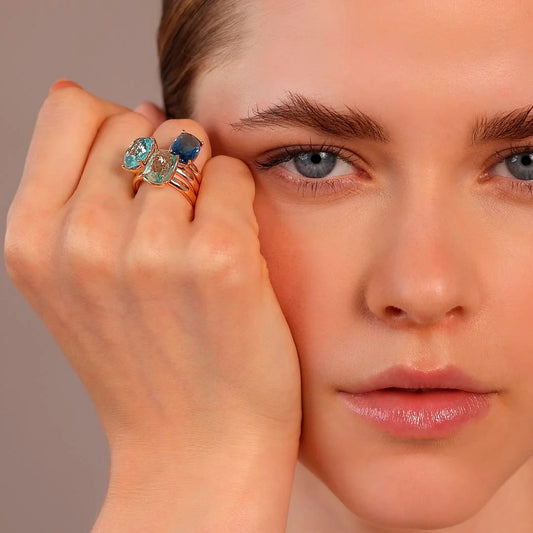 Availability: 1018Regular price €89.00 EURRegular priceSale price €89.00 EURRetail: €0.00 EURUnit price / perCocktail Ring with Rectangular Prism Gem Mosaic Cut