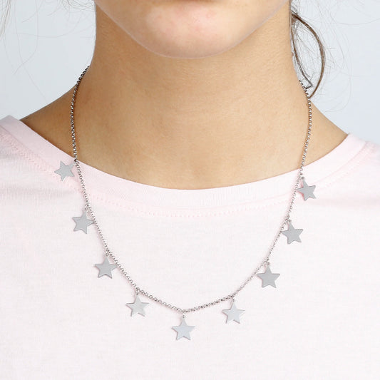 Collana Catena Rolo con Ciondoli Stella in Argento 925 placcato Platino Sku: WSBC00184