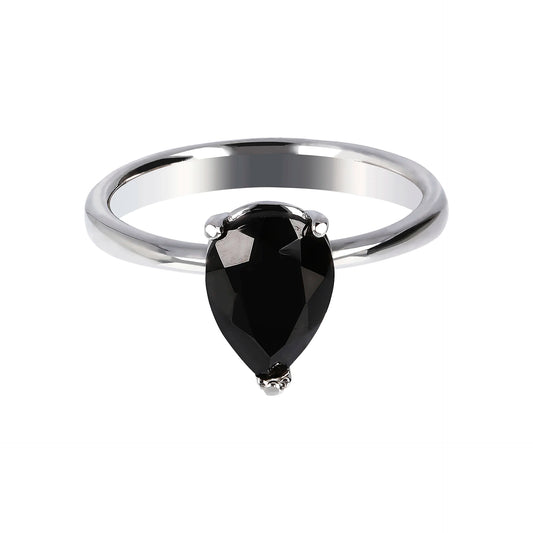 Solitaire Ring in 925 Silver plated with Platinum with Black Spinel Drop Shape Sku: WSBC00209