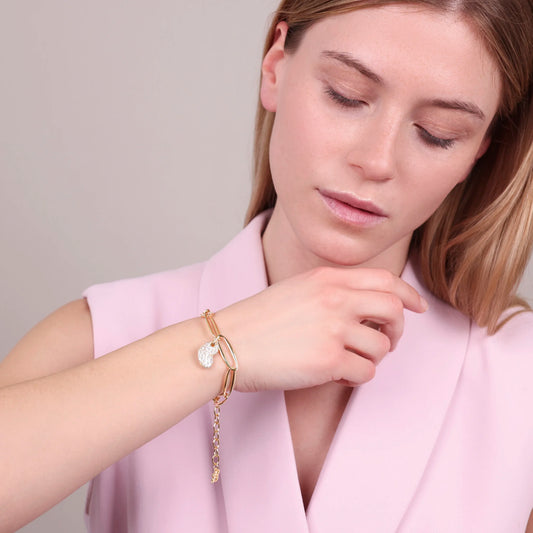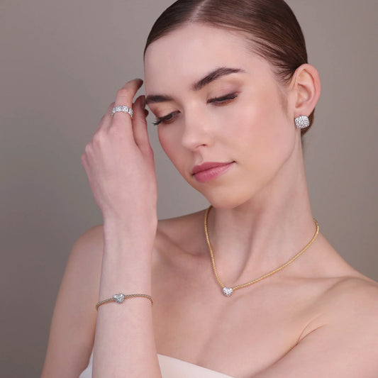 Bracciale Golden Maglia Popcorn con Cuore in Pavé di Cubic Zirconia Sku: WSBZ02494Y