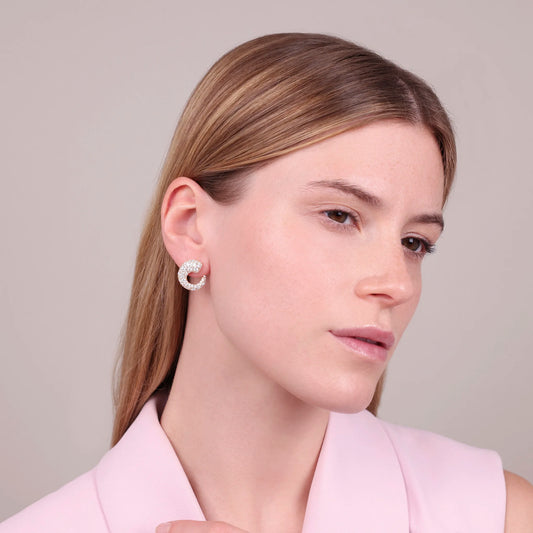 Orecchini a Lobo Golden Semicerchio Graduato in Pavé Misto Sku: WSBZ02444Y