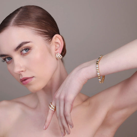 Bracciale Rigido Golden Maglia Popcorn con Pavé di Cubic Zirconia Sku: WSBZ02493Y