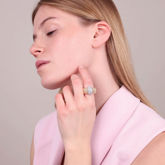 Availability: 101Regular price €129.00 EURRegular priceSale price €129.00 EURRetail: €0.00 EURUnit price / perGolden Tubogas Band Ring with Cubic Zirconia Pavé