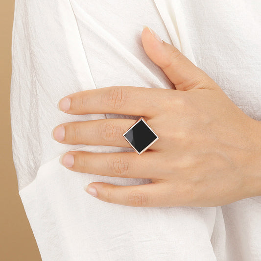 Anello Cocktail con Pietra Naturale Quadrata e Cuori Sku: WSBZ01906