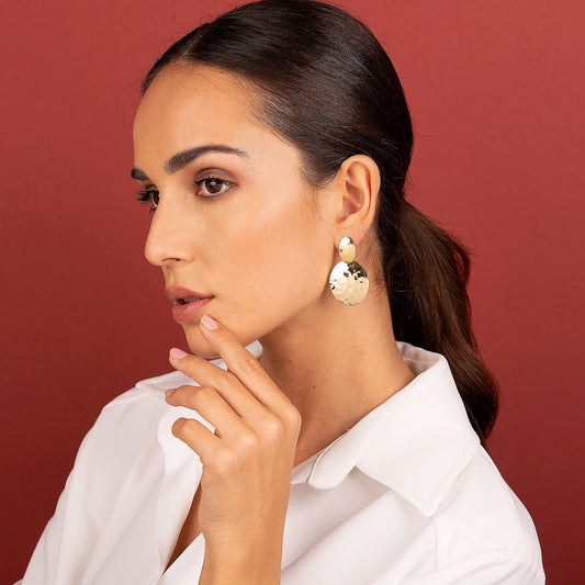 Graduated Hammered Oval Hoop Earrings Sku: WSET00912
