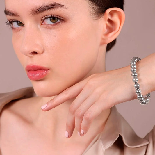 Bracciale con Sfere Lucide in Argento 925 placcato Platino Sku: MTV459