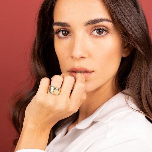 Bague martelée en argent 925 plaquée en or jaune 18 carats avec pavé de zircones cubiques Sku: WSET00729