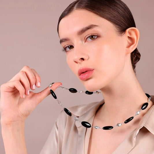 Collana Lunga in Argento 925 placcato Platino con Pepite Lucide e Pietre Naturali Sku: MTV481